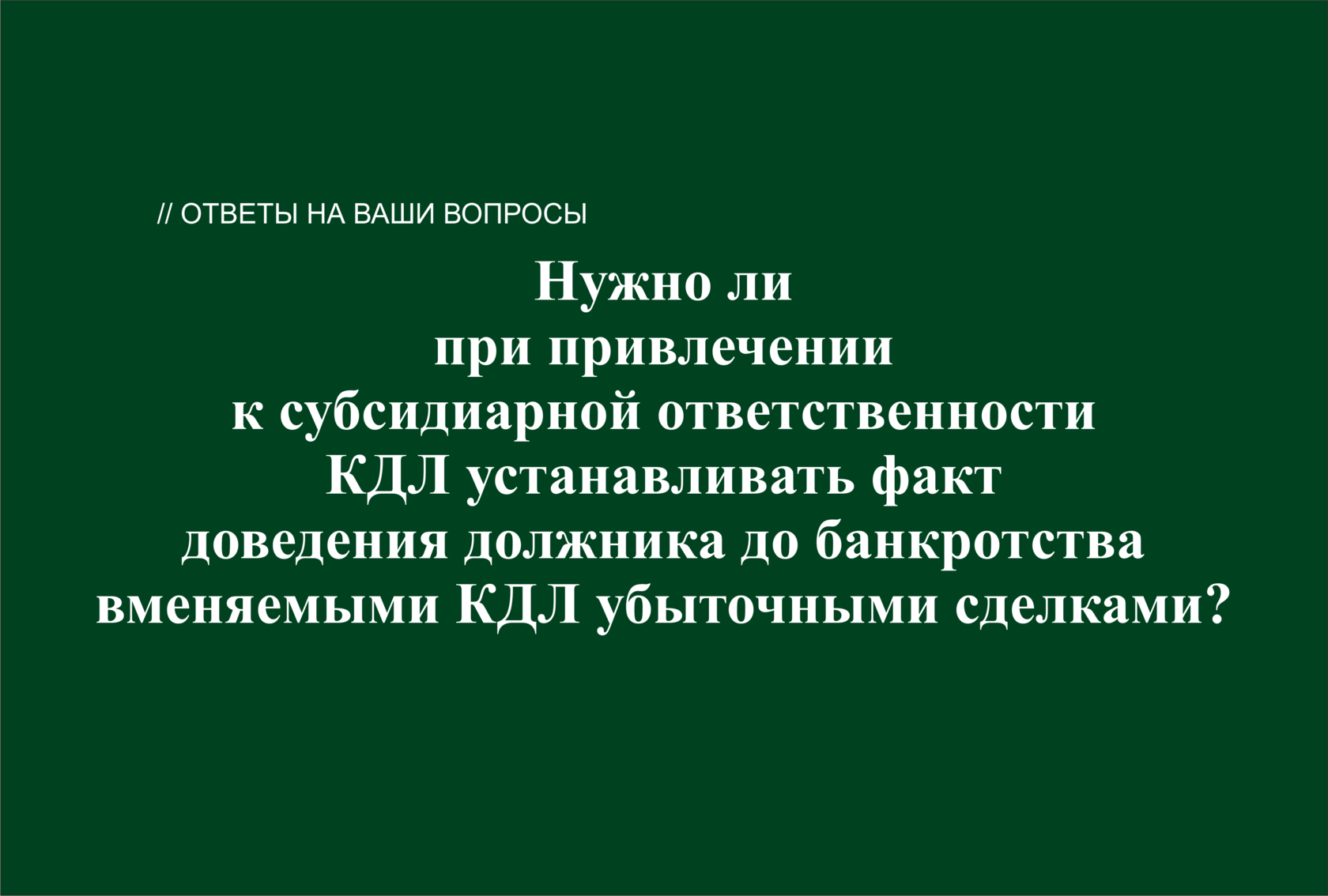 Вопрос: нужно ли при привлечении к субсидиарной ответственности КДЛ устанавливать факт доведения должника до банкротства вменяемыми КДЛ убыточными сделками?