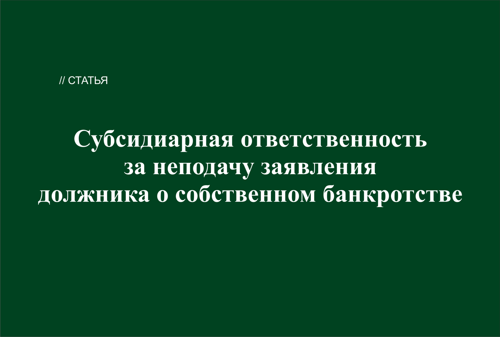 Одним из оснований для привлечения контролирующих должника лиц к субсидиарной ответственности за неподачу заявления должника о собственном банкротстве является невыполнение обязанности по подаче в суд заявления о банкротстве организации, когда такая обязанность возникает.